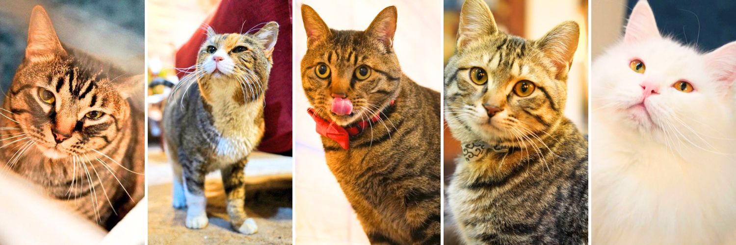 アトリエ高菜先生には店長高菜先生をはじめ、事情があり飼えなくなってしまった兄弟、保健所行きが決まっていた子猫、大怪我していた猫など訳アリの保護猫が計6匹住んでいます。